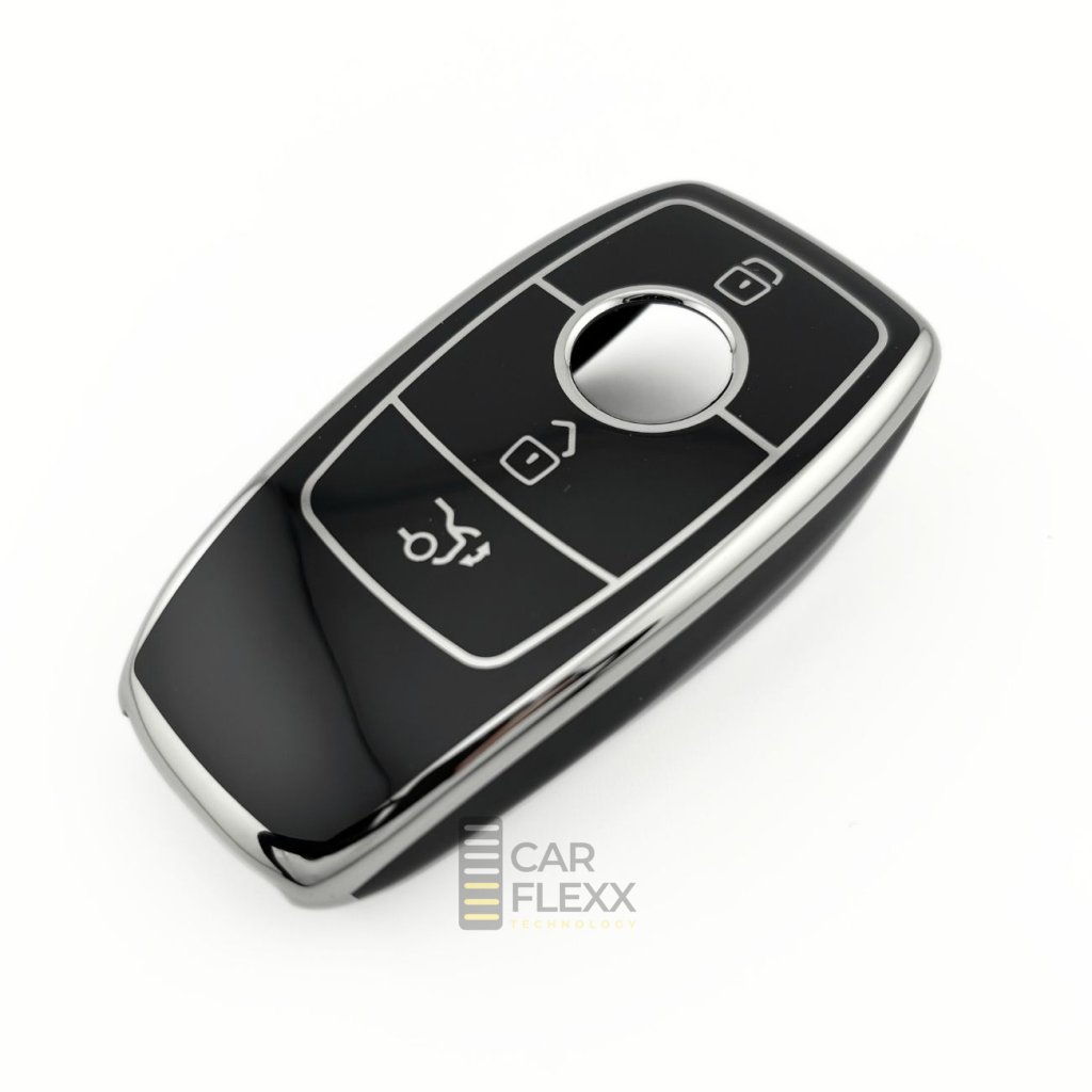 Černý lesklý povrch doplněný o chromové detaily působí prémiově a zároveň zachovává moderní vzhled novějších modelů Mercedes. Díky přesnému tvarování zůstává plná funkčnost tlačítek zachována – kryt neomezuje používání klíče ani signalizaci dálkového ovládání.