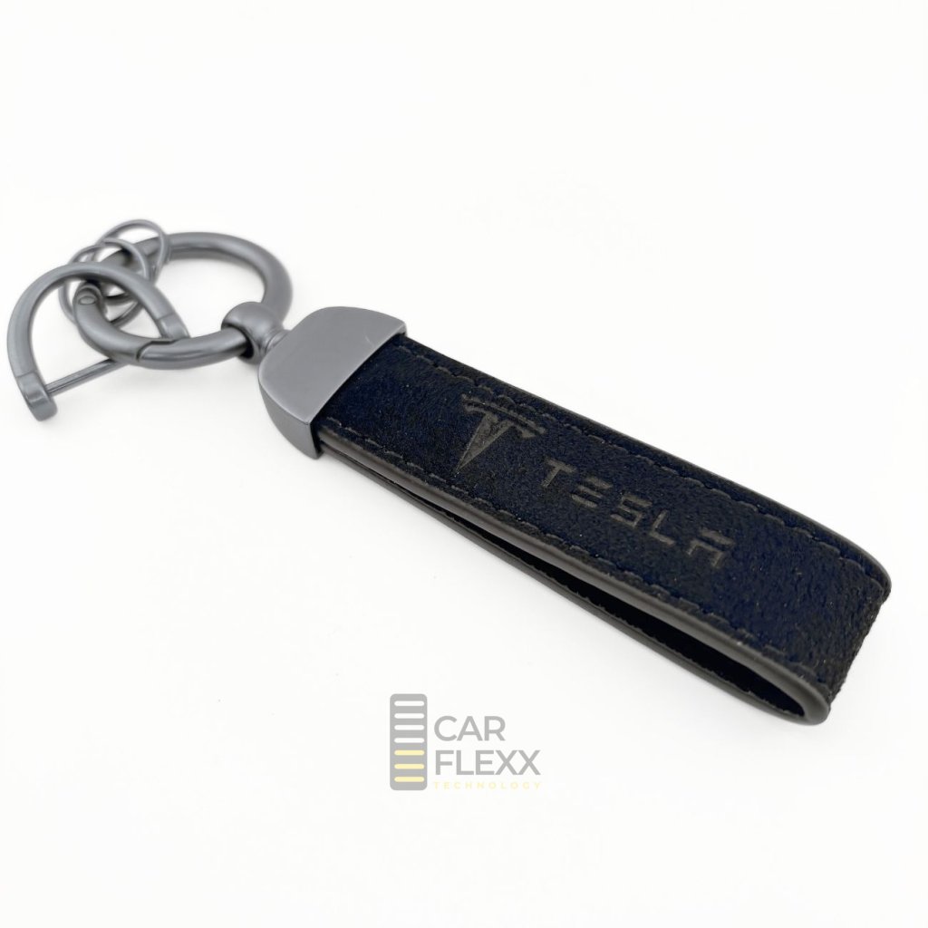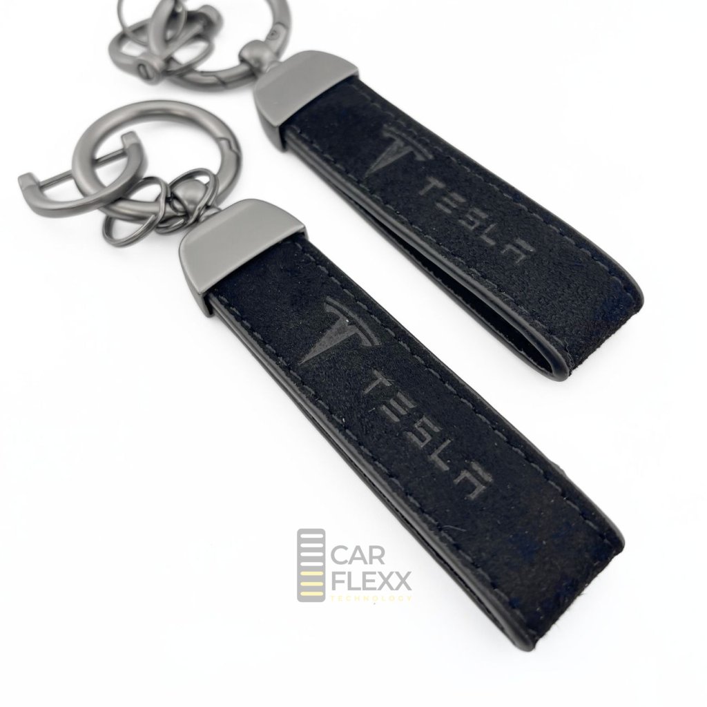 Tato prémiová klíčenka Tesla je navržena pro majitele vozů Tesla, kteří oceňují kvalitní zpracování, minimalistický design a důraz na detail. Kombinace kovových prvků a černé Alcantary / semišového materiálu vytváří elegantní a moderní doplněk, který perfektně ladí s interiérem i exteriérem vozu.