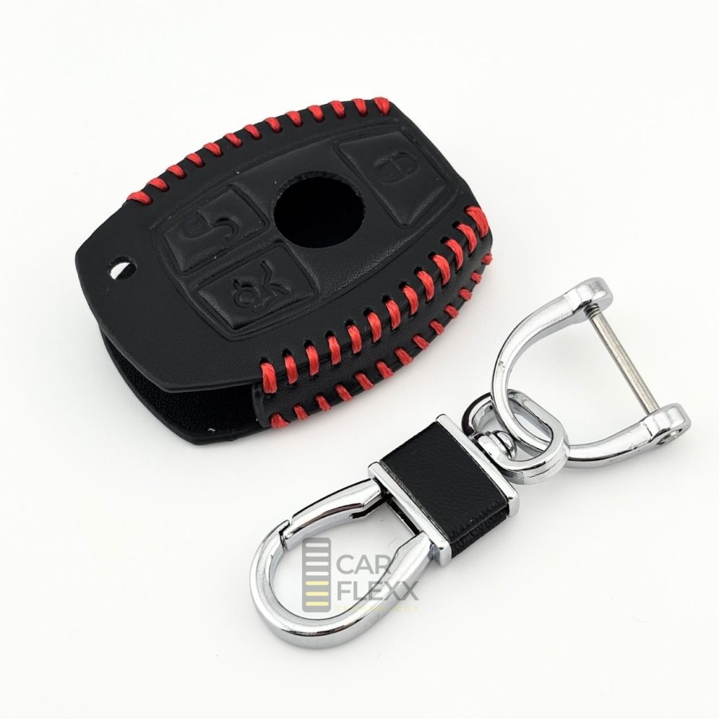 Elegantní pouzdro na klíč Mercedes z kvalitní černé koženky přináší dokonalou rovnováhu mezi luxusním stylem a sportovním charakterem. Ruční červené prošívání dodává pouzdru výrazný vzhled, který zaujme na první pohled, zatímco pevná konstrukce chrání klíč před poškrábáním, pády a každodenním opotřebením.