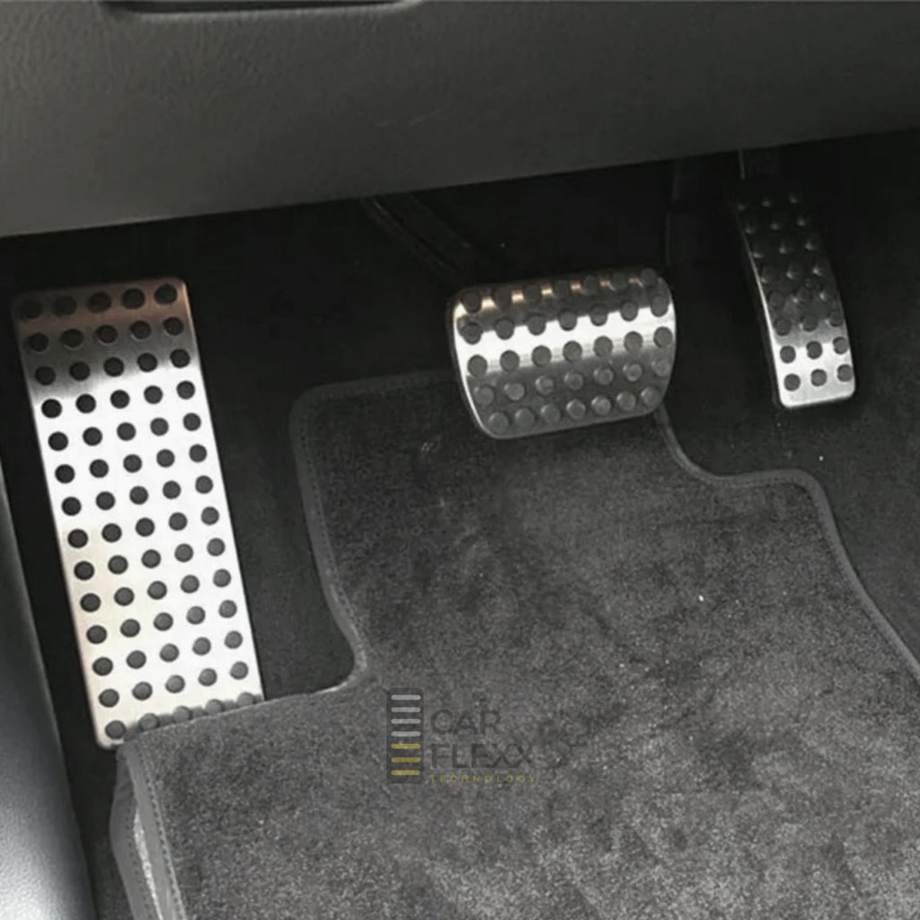 Tyto sportovní nerezové pedály pro vozy Mercedes-Benz s automatickou převodovkou dodají interiéru moderní sportovní vzhled a zároveň zvýší bezpečnost při řízení. Jsou vyrobeny z kombinace nerezové oceli a protiskluzové gumy, díky čemuž zajišťují pevný kontakt nohy s pedálem i za mokra.