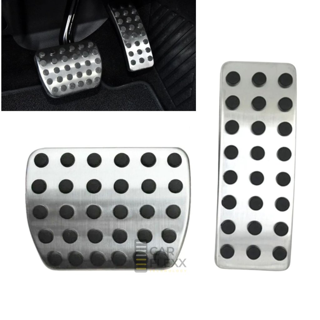 Kombinace nerezové oceli a protiskluzové gumy zajišťuje pevný kontakt nohy s pedálem i za mokra. Pedály se montují bez vrtání a bez nevratných úprav – jednoduše se nasazují na původní pedály vozidla.